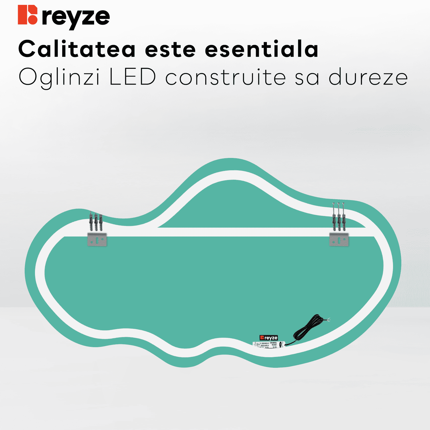 SPECIFICATII OGLINDA LED REYZE Tara de origine Romania (Brasov) - Suntem producator oficial al oglinzilor LED Reyze Tip produs Oglinda LED Gama oglinda Simetria Model oglinda Model 1 Forma oglinda Verticala Dimensiuni disponibile pe inaltime 50 cm, 60 cm, 70 cm, 80 cm, 90...