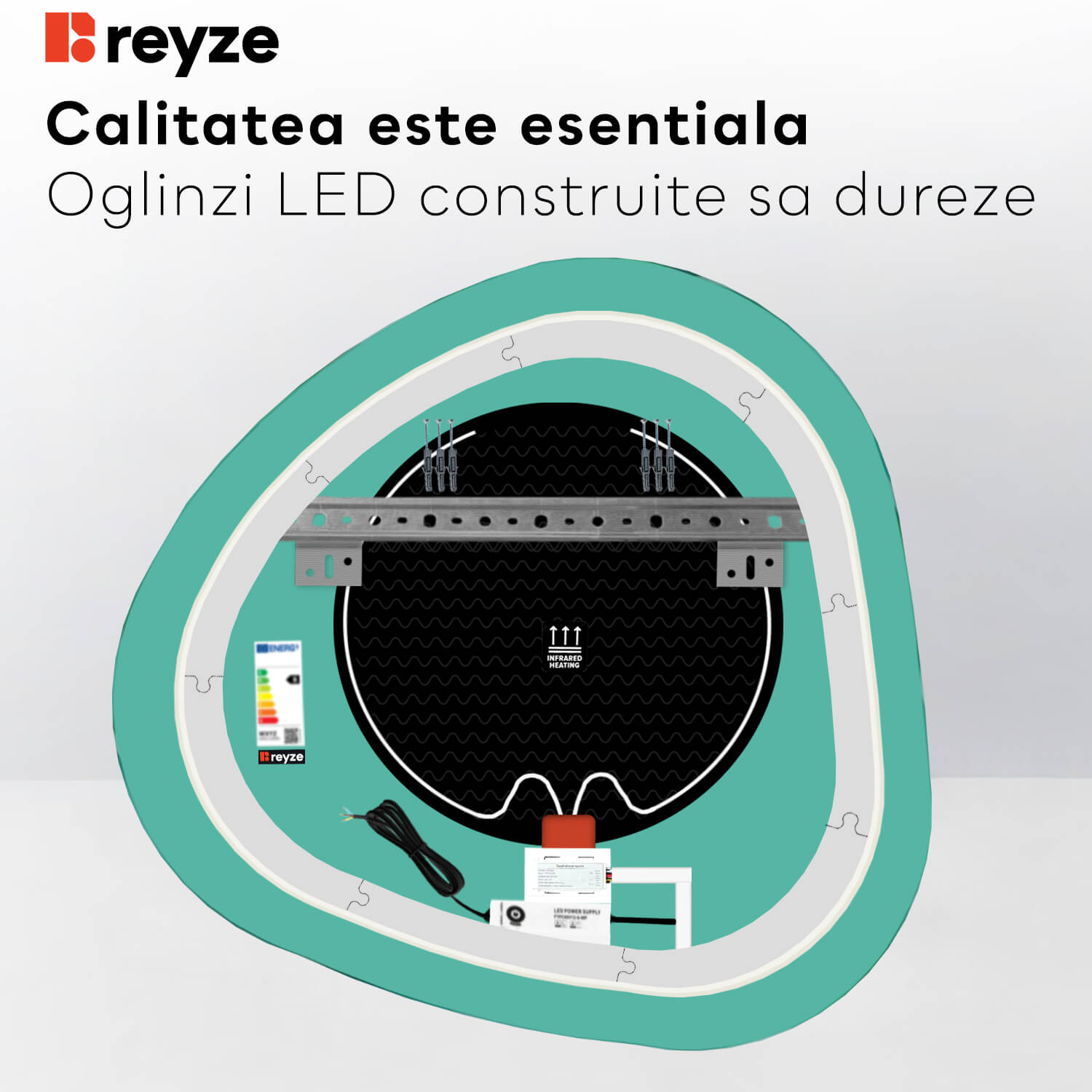 SPECIFICATII TEHNICE OGLINDA LED REYZE Product type: Oglinda LED Gama: Ambient Model: LED 1 Forma Oglinda LED: Oglinda LED Patrata Dimensiuni disponibile: 50x50 cm, 60x60 cm, 70x70 cm, 80x80 cm, 90x90 cm, 100x100 cm, 110x110 cm, 120x120 cm, 130x130 cm Temperatura LED: Cald 3000K...